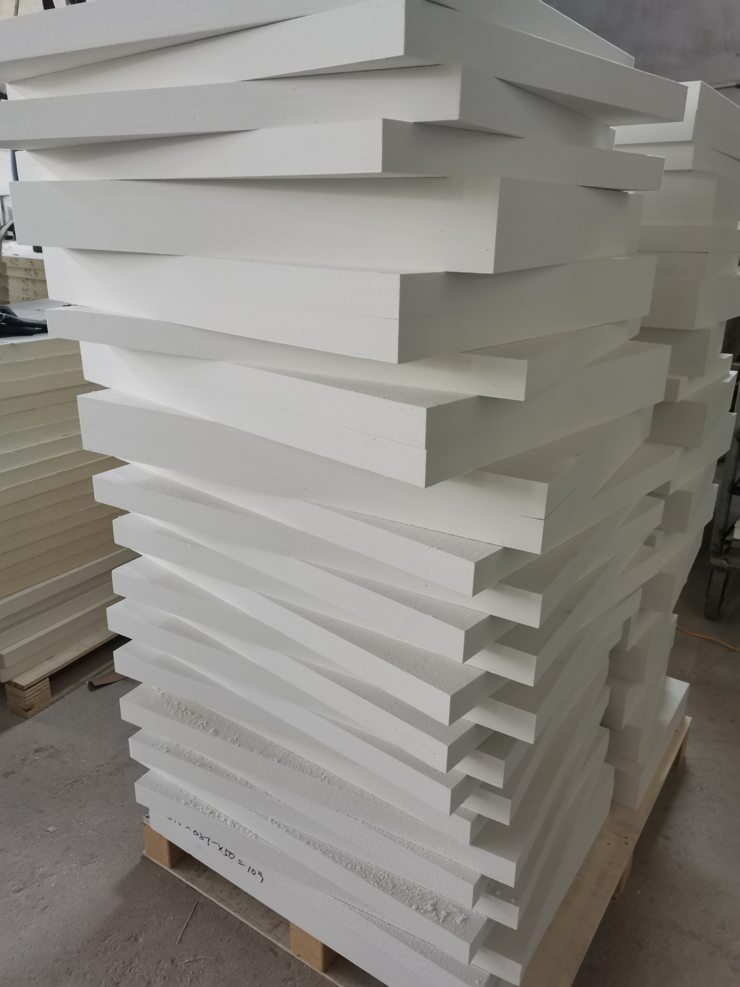 在硅酸鋁棉噴吹時加入一定比例的粘結(jié)劑,形成硅酸鋁氈坯通過固化室熱風穿透定型后,電腦控制臺自動切割成型的硅酸鋁干法板